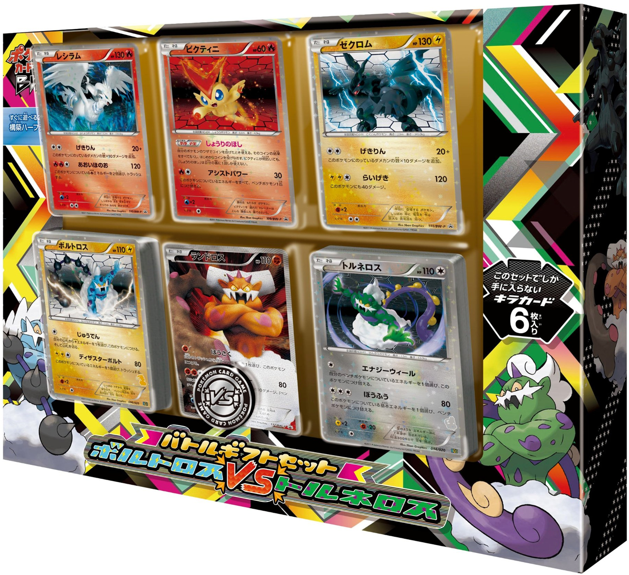 A noter que ce coffret contient 4 cartes promotionnelles : Victini - Reshiram - Zekrom et Démétéros.
