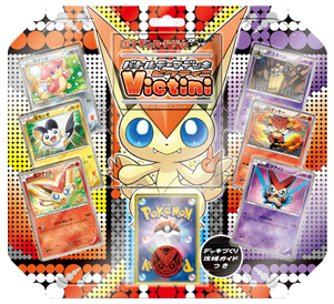 Ce coffret propose deux demi-decks construits autour du Pokémon légandaire Victini édité en deux exemplaires pour l'occasion avec une première version de type feu et la seconde de type Psy.